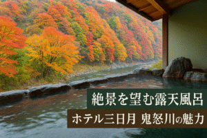 私が訪れたのは秋。露天風呂から見える紅葉がまるで絵画のようで、湯気と落ち葉が舞う光景は忘れられません。夜には満天の星空、朝は小鳥のさえずりとともに湯浴みを楽しめ、心身ともに癒されました。